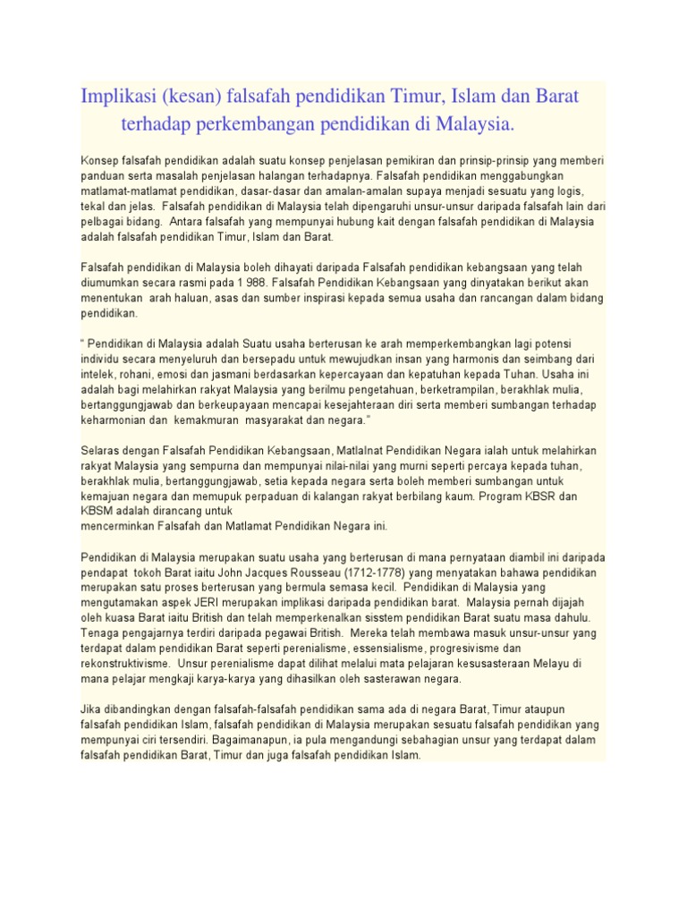 Implikasi (kesan) falsafah pendidikan Timur, Islam dan ... from imgv2-2-f.scribdassets.com Falsafah dan dasar kpf3 012 education development in malaysia: Sekolah khas bagi murid bermasalah penglihatan dan bermasalah program ini diwujudkan di sekolah harian biasa rendah dan menengah dan sekolah menengah teknik/vokasional yang menggunakan pendekatan. Dasar pelajaran ialah tanggungjawab menteri pelajaran yang juga bertanggungjawab atas pelajaran. Reka bentuk kurikulum malaysiakumpulan knama pensyarah : Bersama dengan saudara huzayl bin mohammad noor sia untuk kupasan buku pilihan beliau iaitu islam dan dasar pemerintahan: Perkembangan pendidikan di malaysia falsafah dan dasar. Sila kongsikan hasil perbincangan anda mengenai perkembangan pendidikan dan falsafah pendidikan di malaysia dalam bentuk peta pemikiran dalam ruangan ini. Perkembangan pendidikan di malaysia :
