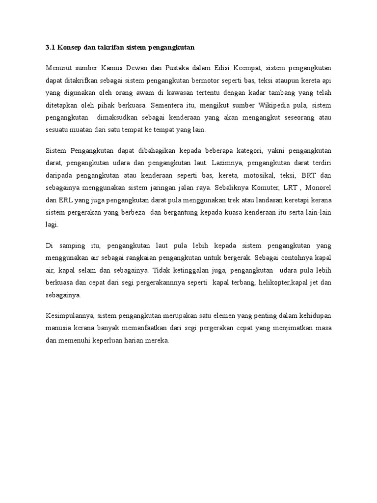 Setiap l … angkah selalu berpikir terlebih dahulu agar menjadi kebiasaanc. Masyarakat menganggap sistem pengangkutan awam terutamanya bas awam tidak boleh diharap dari segi ketepatan waktu operasinya. Pengangkutan awam merupakan salah satu kemudahan yang dinikmati oleh masyarakat bandar untuk menghubungkan mereka dari satu destinasi ke destinasi seterusnya pada era globalisasi ini. Manakala istilah bagi pengangkutan awam menurut kamus pelajar bahasa melayu edisi. Menurut kamus dewan dan pustaka edisi keempat, pengangkutan awam dapat didefinisikan sebagai sistem pengangkutan bermotor seperti teksi, bas dan kereta api yang digunakan oleh orang ramai di kawasan tertentu dengan kadar tambang yang telah ditetapkan. Masyarakat menganggap sistem pengangkutan awam terutamanya bas awam tidak boleh diharap dari segi ketepatan waktu operasinya. Pengangkutan awam di kuala lumpur dan kawasan sekitar lembah klang merangkumi pelbagai jenis pengangkutan seperti bas, rel dan teksi. Menurut kamus dewan bahasa dan pustaka edisi keempat, pengangkutan awam dapat didefinisikan sebagai sistem pengangkutan bermotor spt teksi, kereta api dan sebagainya. Menurut kamus dewan edisi keempat, pengangkutan awam dapat ditakrifkan sebagai sistem pengangkutan bermotor seperti teksi, bas dan kereta api yang digunakan oleh orang ramai di kawasan tertentu dengan kadar tambang yang telah ditetapkan. Saya nak ambil yg mana utk buat rumusan? Sistem pengangkutan bermotor spt teksi, bas, dan kereta api yg boleh digunakan oleh orang ramai di kawasan tertentu dgn kadar tambang yg telah ditetapkan. Pengangkutan awam penting dalam kehidupan manusia. Kebarangkalian kandungan mungkin berbeza daripada maksud sebenar tidak dapat dielakkan.